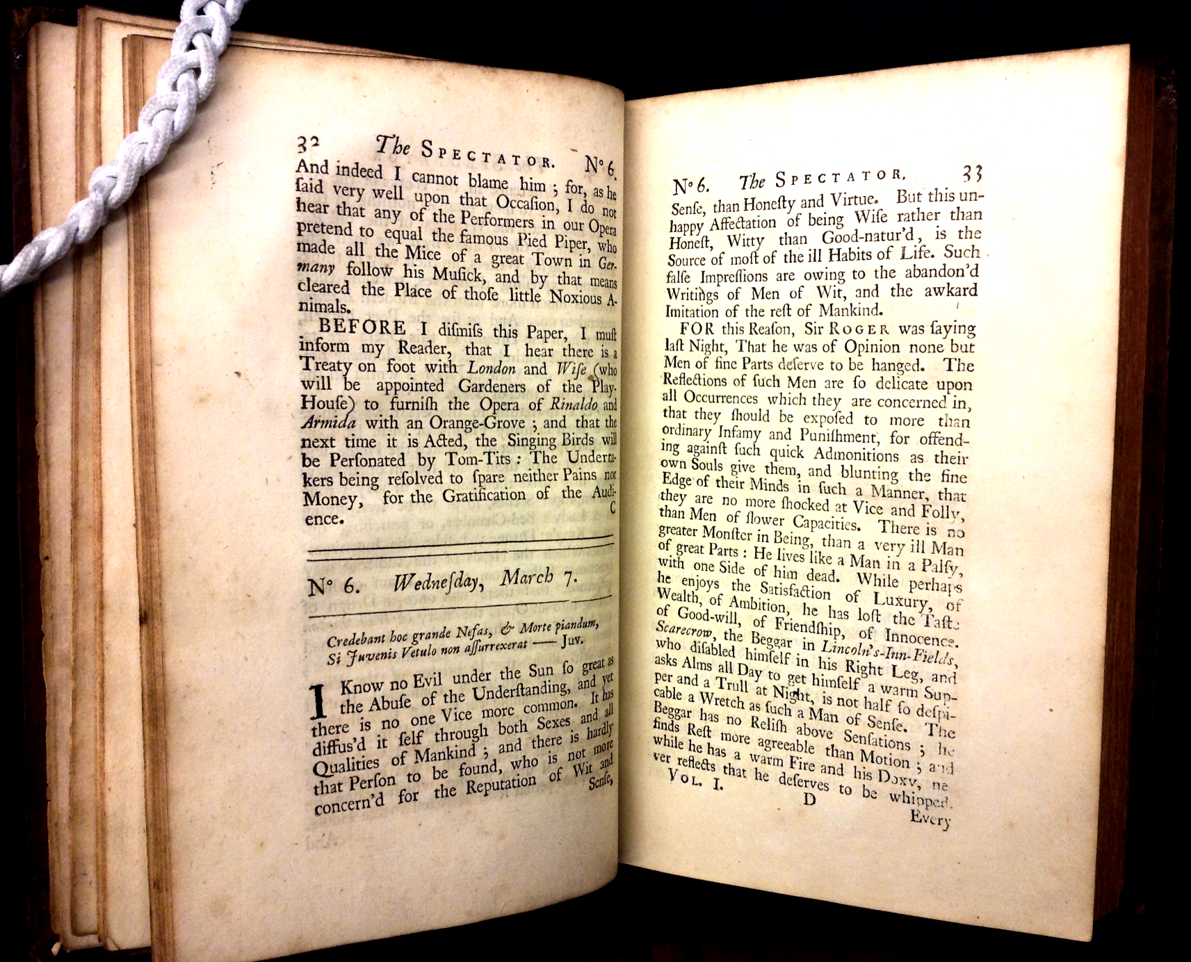 Joseph Addison by Sir Godfrey Kneller. Digital reproductions of The Spectator. Sources: Fales Library, Wikimedia Commons